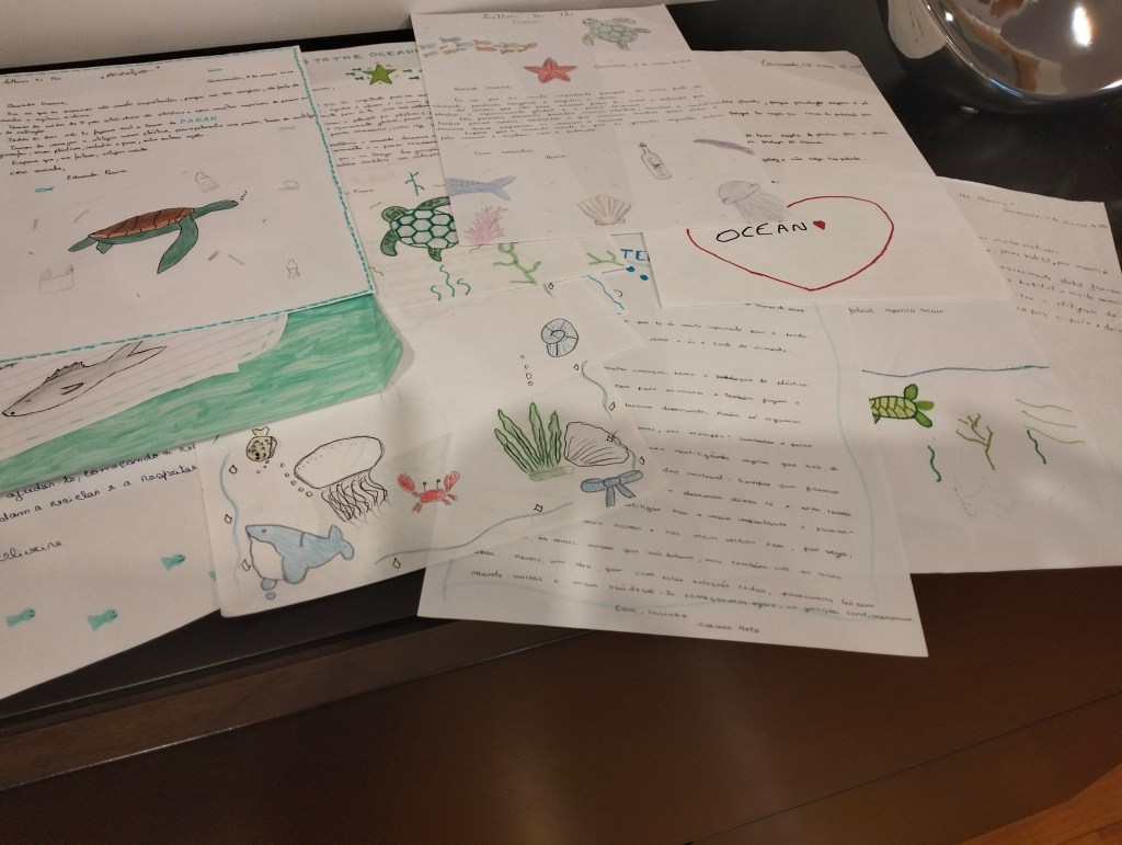 Following the presentation by the Landscape Lab while you were in Portugal (later revised), my 6D students wrote Letters to the Oceans, focusing on the recognition of their importance, the identification of threats and commitments and solutions (actions) people need to take. They ended their letters with a message of hope and a positive appeal.