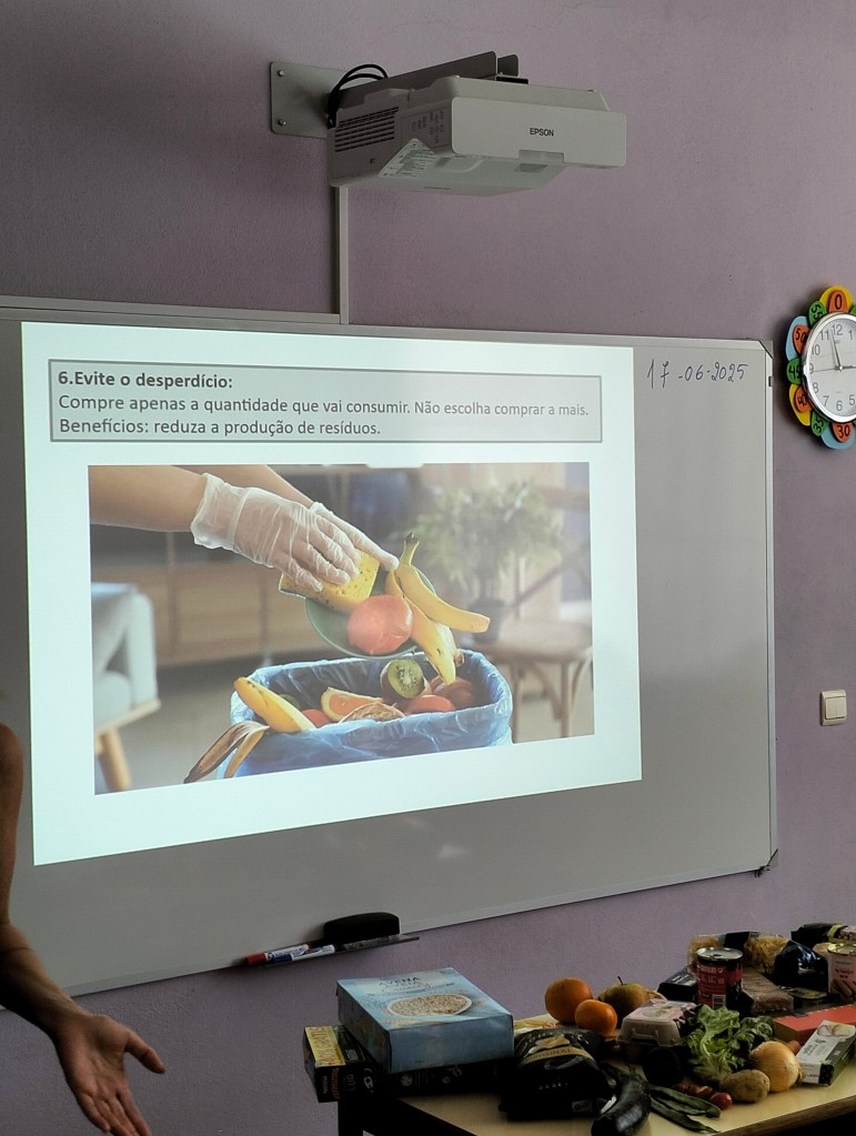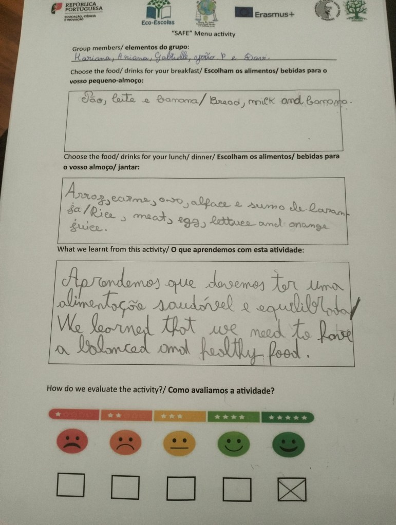 The teachers Carla Teixeira (Eco Schools coordinator) and Marina Freitas (SAFE project coordinator at our school) led the children to an activity about food and sustainability.